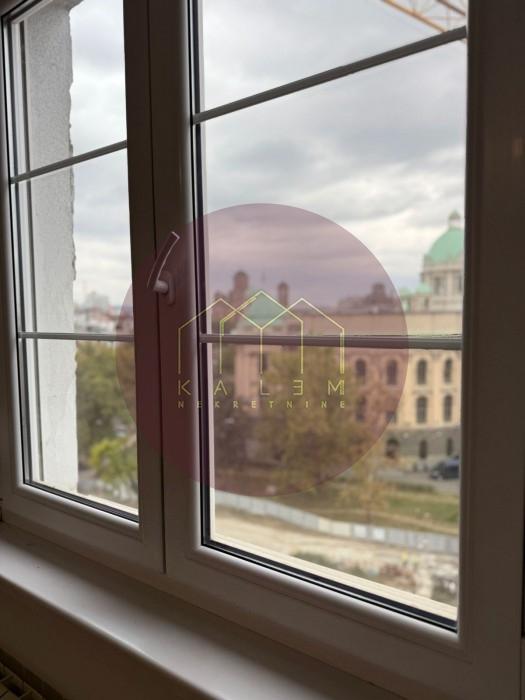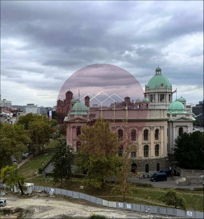 Smešten na 7. spratu zgrade sa liftom, stan se izdvaja prelepim panoramskim pogledom na zgradu Narodne skupštine i centralne gradske ulice.