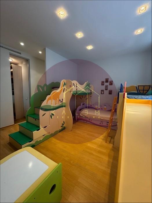 Master spavaća soba poseduje sopstveno kupatilo sa kadom i prostrani walk-in garderober, dok je dečija soba namenski uređena za troje dece - udobna, svetla i praktična.