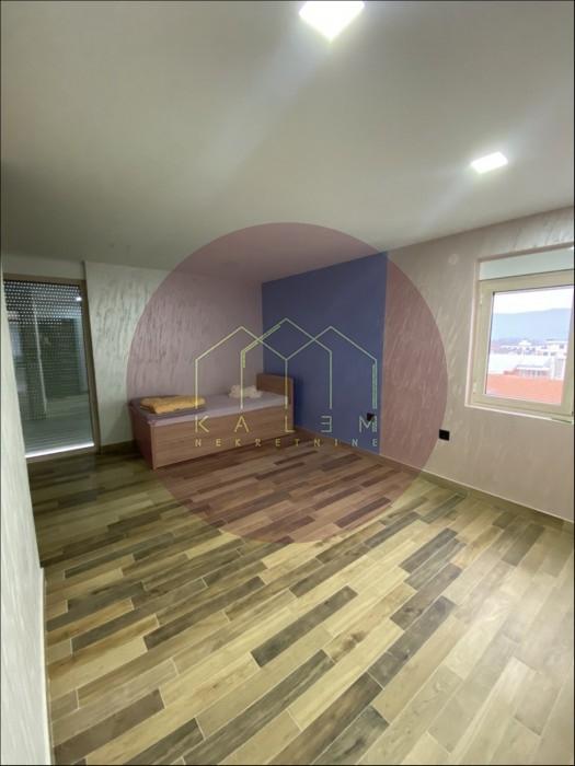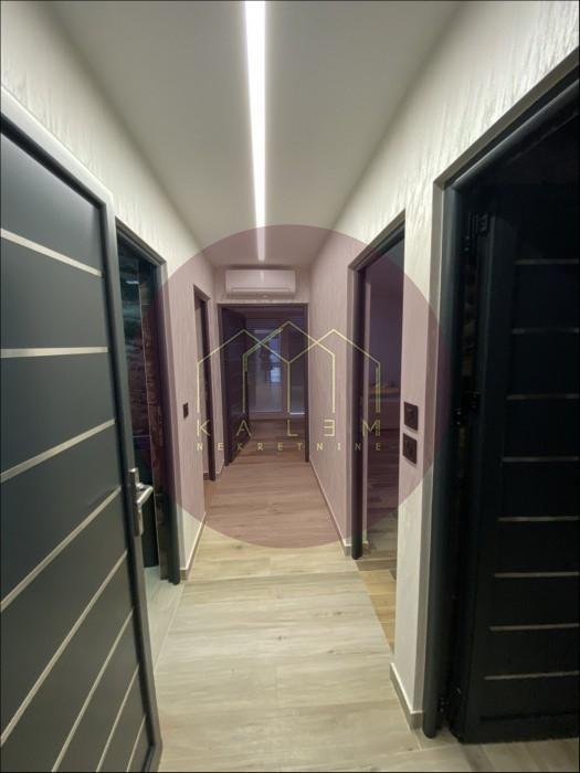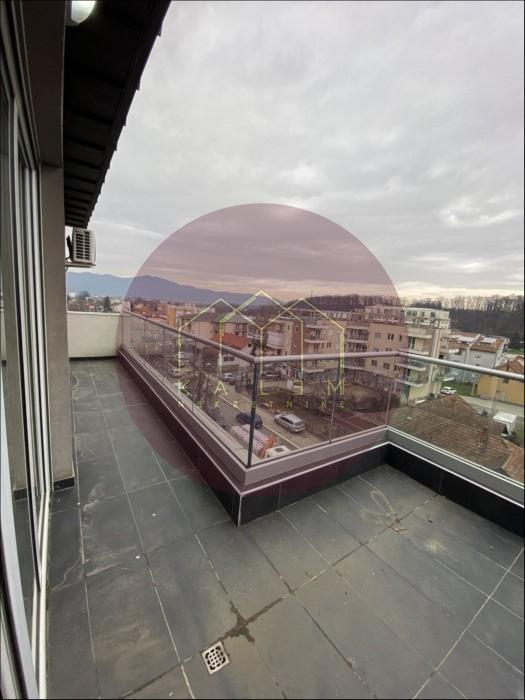 Prostran i izuzetno svetao stan, smešten u neposrednoj blizini kružnog toka, na četvrtom, ujedno i poslednjem spratu kvalitetne zgrade sa liftom.